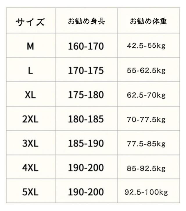 | サイズ | M L XL 2XL 3XL 4XL 5XL |