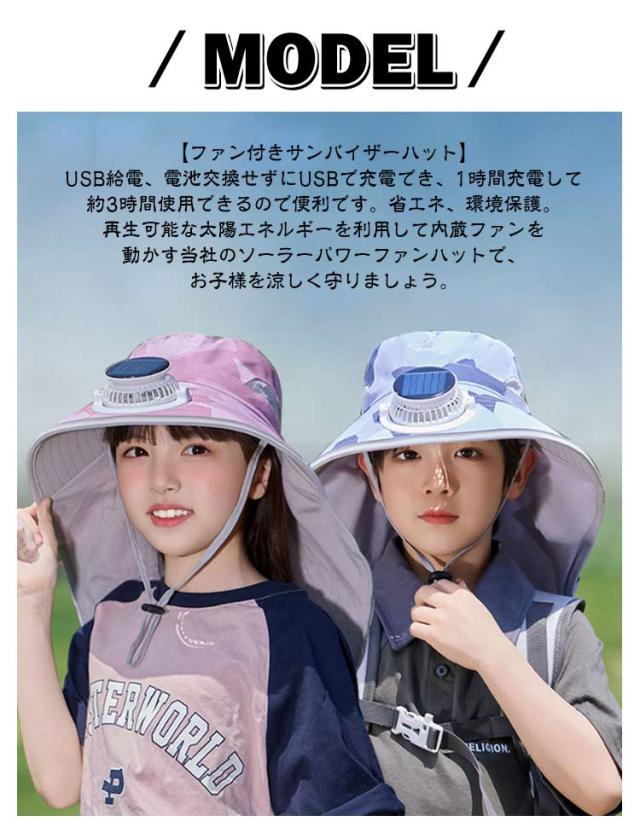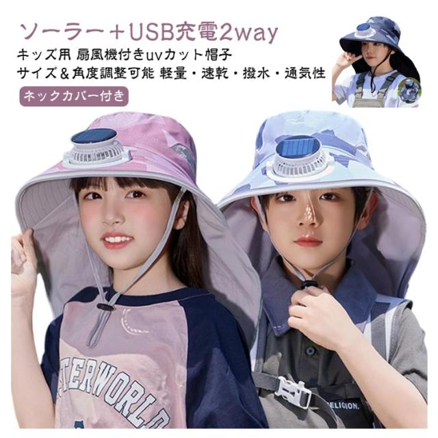 速乾 男の子 【ソーラー+USB充電】2way 女の子 日よけ帽子 USB充電 帽子 撥水 uvカット ネックカバー 首ガード 扇風機付き帽子 ソーラー 扇風機 ファン付き 【ソーラー+USB充電】2way ハット 日焼け防止 日除け帽子 つば広帽子 アウトドア
