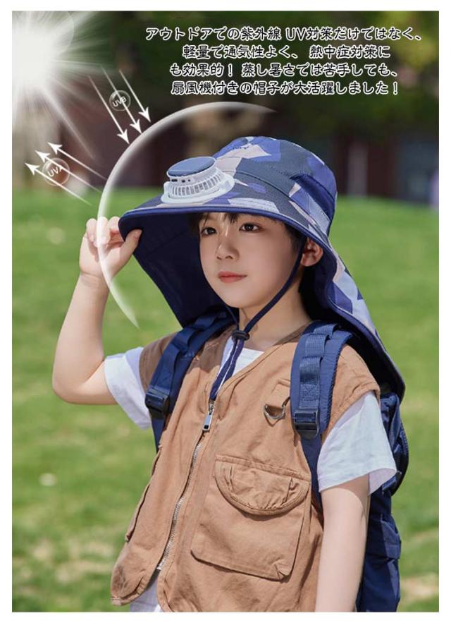 | ソーラー+USB充電2way 軽量・速乾・撥水・通気性 サイズ&角度調整可能 ネックカバー付き キッズ用 扇風機付きuvカット帽子 【ファン付きサンバイザーハット】 USB給電、電池交換せずにUSBで充電でき、1時間充電して約3時間使用できるので便利です。省エネ、環境保護。再生可能な太陽エネルギーを利用して内蔵ファンを動かす当社のソーラーパワーファンハットで、お子様を涼しく守りましょう。 【ファン冷却】 子供用のファン搭載帽子は上下調節可能なデザインと風速を備えており、夏に涼しい風を楽しむことができ。ファンの角度は必要に応じて調整できます。 【ソーラー+USB充電の多機能キャップ】 ソーラーパネルを日光を当てることで充電できます。晴れの日にどこでもいつでも充電可能♪雲の日もUSB充電できるため、心配なし、安心で使うことができます。 【快適性】 額前エアクッションは汗を吸収して快適である,通気性を促進し、後頭部やわらかいゴムひもの弾力性が調節できます。 ハイキング、ランニング、サイクリング、ショッピング、ビーチ旅行、登山、スクエアパーティー、その他のアウトドアアクティビティに適しています。 【広いつば・通気性抜群】 広いつばで、紫外線遮蔽率は99%以上です。周りはメッシュ素材で、通気性が抜群。蒸れない・吸湿・速乾性に優れ、夏だけでなく、オールシーズンに活躍していただけます。 【紫外線UV対策・熱中症対策】 大きなつばのある遮光エリアは、紫外線をしっかりカバーし、日焼けを防ぐことができます。暑い季節の不快感を最小限に抑え、子どもに快適なアウトドア体験を提供します。 アウトドアでの紫外線 UV対策だけではなく、軽量で通気性よく、 熱中症対策にも効果的! 蒸し暑さでは苦手しても、扇風機付きの帽子が大活躍しました! 【速乾&撥水加工でより安心】 メイン素材には撥水加工が施されているので、急な雨や海やプールでの水遊びの水滴から頭を守ってくれる!アウトドア活動でも安心。 ゴムによる頭回りは48-55cmまで調整可、性別を問わず、ほとんどの頭型に適している 顎日も紐がつき、サイズ調整でき、風が強い時は帽子も飛ばされません。 【充電できる場所バッテリーが内蔵する】 パソコン、車載充電器、でいつでもどこでもすばやく充電できます。2wayの充電方法な | |