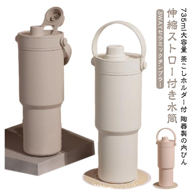 735ml 直飲み 豆乳 水筒 車載対応 コーヒー 伸縮 セラミック タンブラー 持ち運び こぼれない おしゃれ 茶こし ストロー付き 蓋付き 大容量 保温 3WAY 真空 断熱 マグボトル 3WAY 牛乳 炭酸 ストロー付き水筒 伸縮ストロー 車載せでき セラミックコーティング 静音