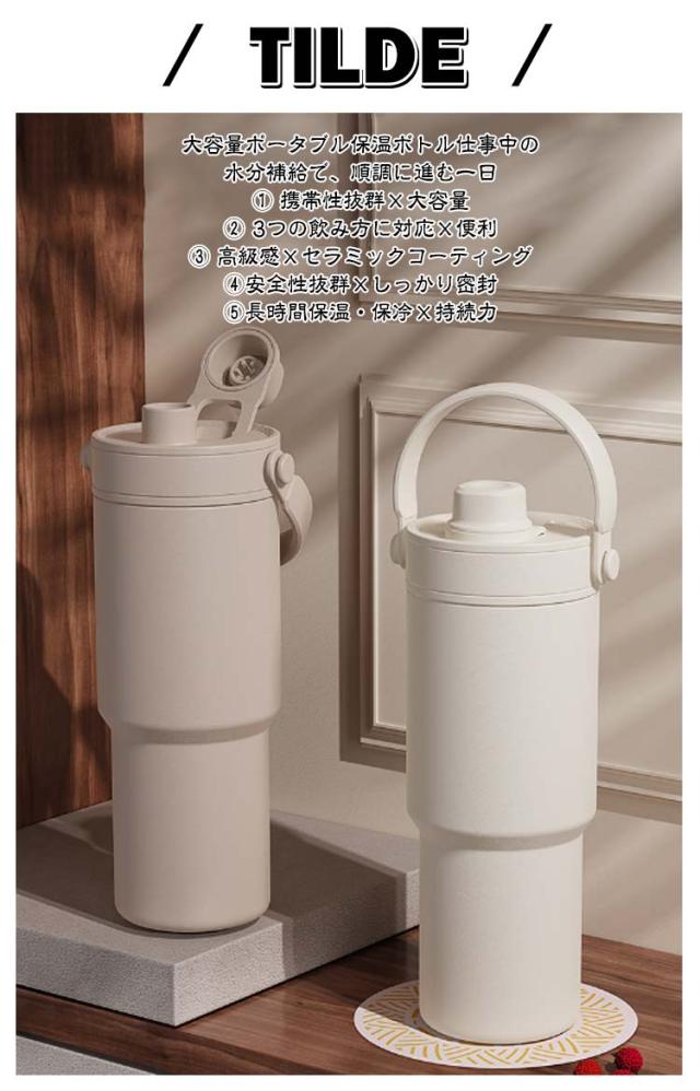 | 伸縮ストロー付き水筒 735ml大容量 茶こしホルダー付 陶器製の内びん 3WAYセラミックタンブラー 大容量ポータブル保温ボトル仕事中の水分補給で、順調に進む一日 1.携帯性抜群×大容量 2.3つの飲み方に対応×便利 3.高級感×セラミックコーティング 4.安全性抜群×しっかり密封 5.長時間保温・保冷×持続力 <お勧めポイント> ●ストロー付き&広口設計 色々な飲み方が楽しめる! 大容量で、 ゴクゴク飲めて、快適な水分補給をサポート。 ●陶磁製内びん 内胆は高品質な陶磁製コーティング。 安全で健康的な水分補給が可能です。 ●しっかり温度をキープ 内外6層構造で、飲み頃の温度をしっかりキープ。 1.耐傷塗装仕上げ 2.304ステンレス外層 3.真空断熱層 4.超微細銅コーティング隔離層 5.内側の電解研磨仕上げ 6.セラミック内層 ●保冷・保温両方に対応 ホットもアイスも、どちらも安心。 時間が証明する品質の高さ。 ●茶こしホルダー付き お茶を淹れる際、茶葉の分離でお好みの濃さに調整可能。 お茶の時間を、もっと自由に、もっと楽しく。 ●精密なシール設計 シリコン密封リングで完璧にガード。 隙間なくぴったり閉じて、滴ることなく漏れません! 1.密封シリコンリング 2.水漏れ防止のシリコンリング ●お手入れ簡単 パーツごとに分解できるので、洗うのもラクラク。 簡単に清潔に保てて、毎日の水分補給がもっと楽に。 ●持ち運びやすさ抜群(車載対応) 底部7.5cmで、車のカップホルダーにもすっきり収まる。 底面がしっかりフィットし、揺れずに安定。 ※車種によってはカップホルダーに適合しない場合がありますのでご注意ください。 ●持ち運びやすい(ハンドル付き) 柔らかいゴム製ハンドル付。 手に優しく、大容量でも快適に持ち運べます。 ●スムーズに飲める(直飲み) 飲んでも鼻に当たらず、快適な飲み心地。 | |