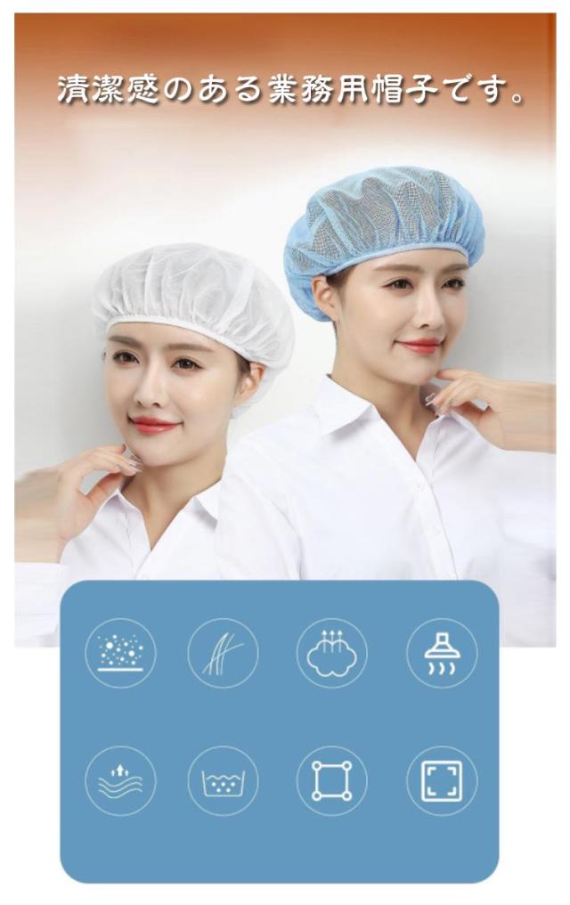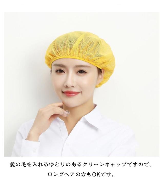 | 清潔感のある業務用帽子です。 生地は丈夫なのでくり返し使用できます。 メッシュが細かく、洗濯してもすぐに乾きます。 頭部の周りはゴムなので、男女兼用、幅広くご利用いただけます。 髪の毛を入れるゆとりのあるクリーンキャップですので、ロングヘアの方もOKです。 食品工場・飲食店・レストラン・ホテルの厨房や食品を扱う飲食店や食品工場での利用に最適です! | |