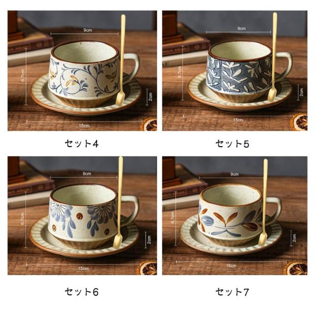 3点 レトロ 和風 花柄 ゴールドスプーン セット カップ マグカップ おしゃれ コーヒーカップ 300ml 300ml かわいい マグ 陶器 皿 碗皿 ソーサー 珈琲カップ 北欧 カフェ 珈琲 コーヒー 食器 カフェ風 和風 洋風 コーヒーカップ ティーカップ 女性