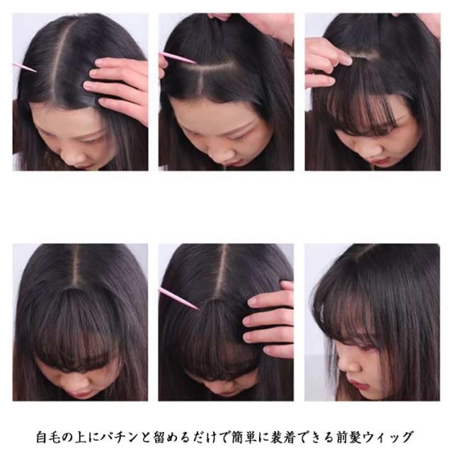 薄型 パッツン 前髪ウィッグ シースルーバング 人毛 ワンタッチ 前髪ウィッグ バレない クリップ ボリュームアップ 小顔効果 もみあげ付き エクステ つけ毛 ポイントウィッグ 部分ウィッグ 薄毛隠し 女性用
