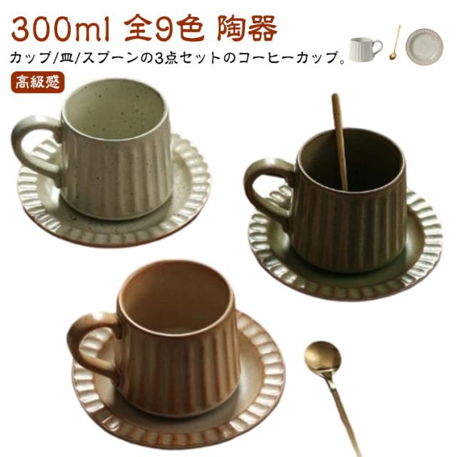 | カップ/皿/スプーンの3点セットのコーヒーカップ。【300ml】【全9色】【陶器】 自宅でカフェのようなコーディネートが楽しめる、カップ&プレートのセットです。 シンプルなのに素敵に見える。使ってみてわかる、飾りすぎない器こそ、毎日の料理を十分に引き立ててくれます。 ぽってりとした厚みとゆるやかなカーブからなるアシンメトリーなフォルムが、ティーシーンにリラックス感をもたらします。 珈琲以外にも様々な飲み物を入れてお楽しみください。 | |