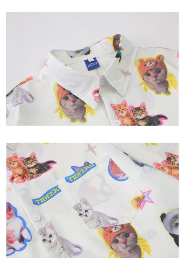 夏服 ゆったり アロハシャツ レディース 薄手 シャツ 半袖シャツ おしゃれ 夏 半袖 猫柄 涼しい 体型カバー 猫柄 半袖シャツ 猫柄 カジュアル カジュアルシャツ 通気 おしゃれ リゾート 旅行 個性的 着?せ