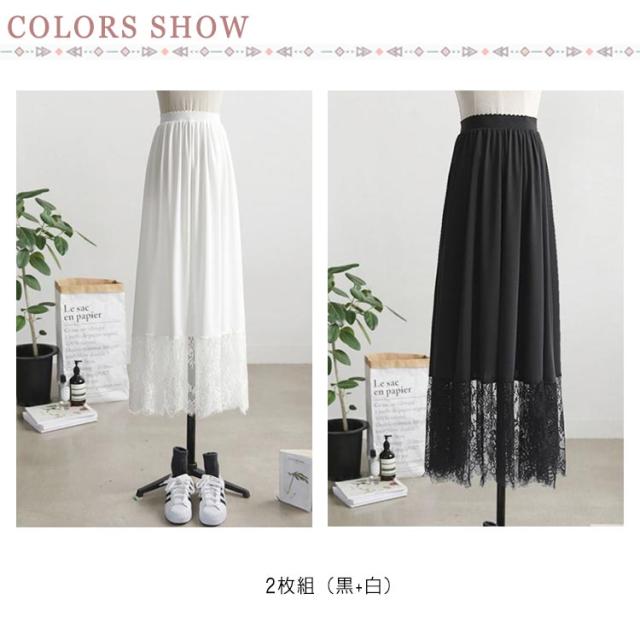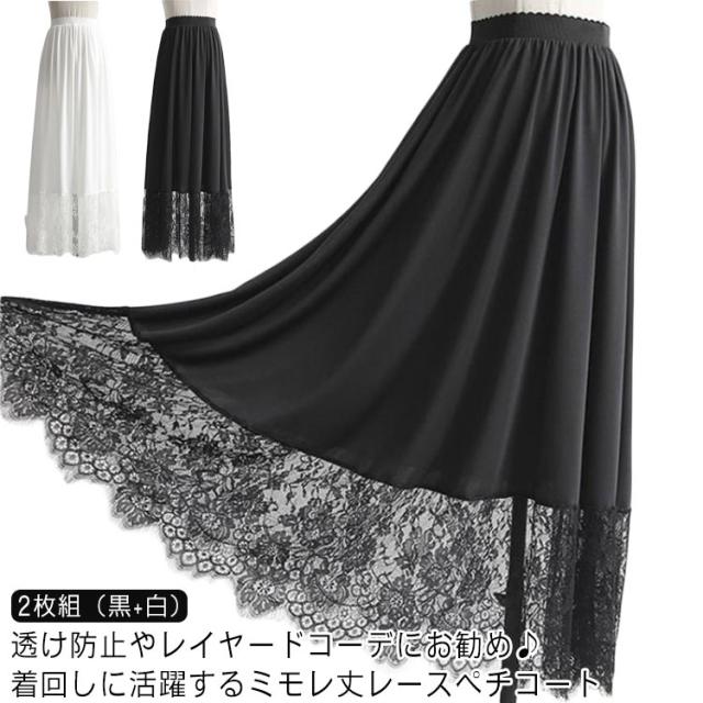 レディース きれいめ 黒 インナー 大人 インナー マキシ丈 レース ロング 裾 2枚組 スカート 裾レース付き 重ね着 ゆったり ホワイト 体型カバー ゆったり 見せ ペチスカート ペチコート 白 ペチコート おしゃれ ナチュラル 春夏 20代 30代 40代