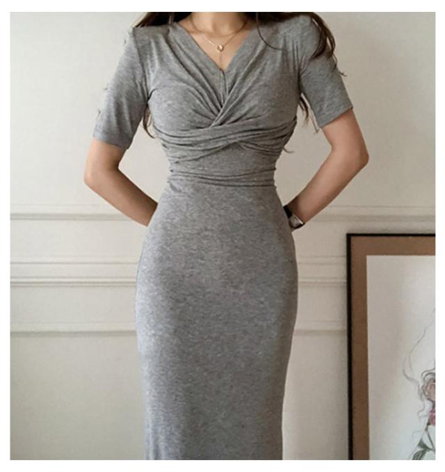 ワンピース セクシー ロング丈ワンピース ワンピ 半袖 ワンピース ミモレ丈 ドレス Vネック スリム タイトワンピース Tシャツワンピ きれいめ 着痩せ 薄手 シンプル タイト ストレッチ おしゃれ レディース フェミニン フィット カジュアル 春 夏 秋 大人 女性