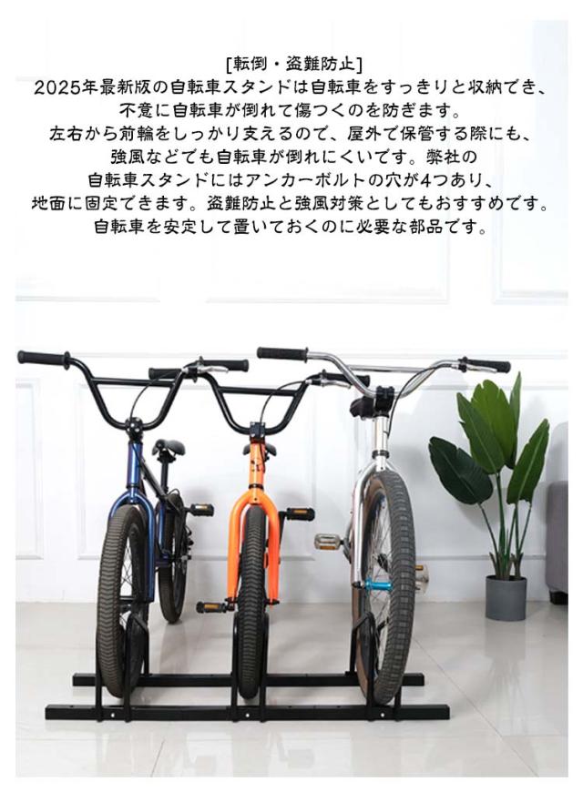 | 好きな台数に変更できる連結タイプ自転車スタンド。 [転倒・盗難防止]2025年最新版の自転車スタンドは自転車をすっきりと収納でき、不意に自転車が倒れて傷つくのを防ぎます。左右から前輪をしっかり支えるので、屋外で保管する際にも、強風などでも自転車が倒れにくいです。弊社の自転車スタンドにはアンカーボルトの穴が4つあり、地面に固定できます。盗難防止と強風対策としてもおすすめです。自転車を安定して置いておくのに必要な部品です。 [錆びにくい・室内室外兼用]自転車スタンドの表面は錆びにくい塗装が仕上げで、長期間綺麗にご使用できます。駐輪方法は自転車の前輪、又は後輪を駐輪スタンドに差し込んで完成です。キックスタンドが付いていない自転車の転倒防止にも使用可能です。自転車置き場に置くことで、自転車の整頓も簡単にできます。 [好きな台数に変更できる連結タイプ]MAX3台から最小1台でもお使いいただけます。単体で異なる場所への設置も可能です。連結で組み換えも可能なので好きな形にスタンドを設置できます。 [様々なシーンで活用]玄関先やガレージ、店舗や会社の事務所など自転車が複数台集まる場所に最適です。 [省スペース]使わない時はコンパクトに折りたためるので保管場所をとりません。 | |