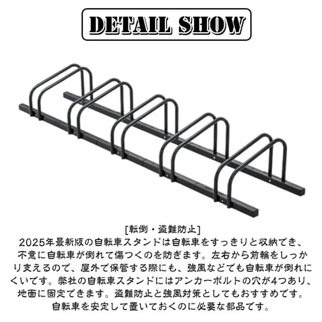 | 好きな台数に変更できる連結タイプ自転車スタンド。【最大5台から最小1台使用可能】 [転倒・盗難防止]2025年最新版の自転車スタンドは自転車をすっきりと収納でき、不意に自転車が倒れて傷つくのを防ぎます。左右から前輪をしっかり支えるので、屋外で保管する際にも、強風などでも自転車が倒れにくいです。弊社の自転車スタンドにはアンカーボルトの穴が4つあり、地面に固定できます。盗難防止と強風対策としてもおすすめです。自転車を安定して置いておくのに必要な部品です。 [錆びにくい・室内室外兼用]自転車スタンドの表面は錆びにくい塗装が仕上げで、長期間綺麗にご使用できます。駐輪方法は自転車の前輪、又は後輪を駐輪スタンドに差し込んで完成です。キックスタンドが付いていない自転車の転倒防止にも使用可能です。自転車置き場に置くことで、自転車の整頓も簡単にできます。 [好きな台数に変更できる連結タイプ]MAX5台から最小1台でもお使いいただけます。単体で異なる場所への設置も可能です。連結で組み換えも可能なので好きな形にスタンドを設置できます。 [様々なシーンで活用]玄関先やガレージ、店舗や会社の事務所など自転車が複数台集まる場所に最適です。 [省スペース]使わない時はコンパクトに折りたためるので保管場所をとりません。 | |