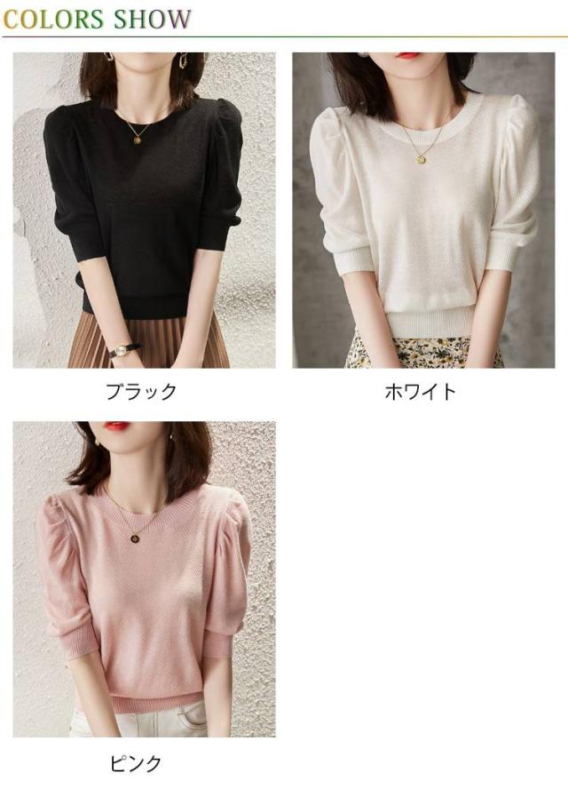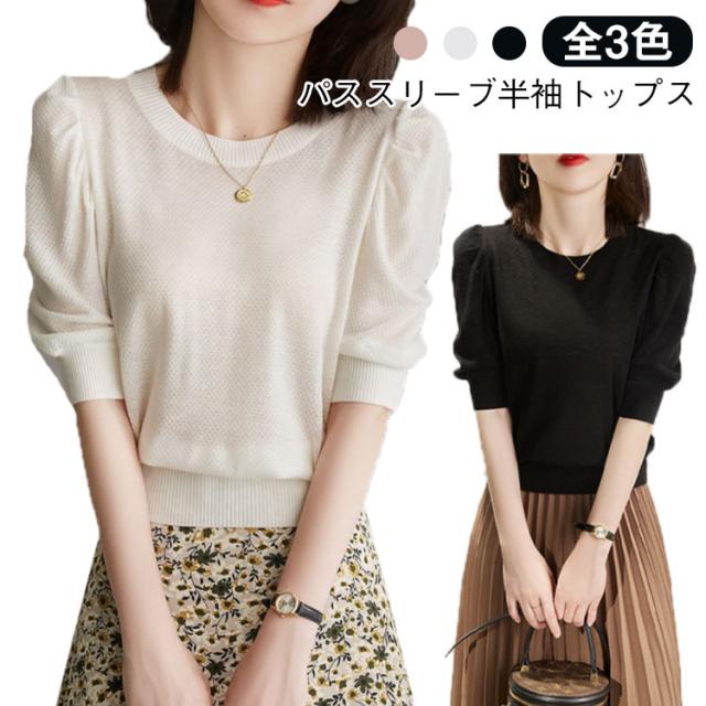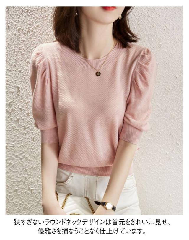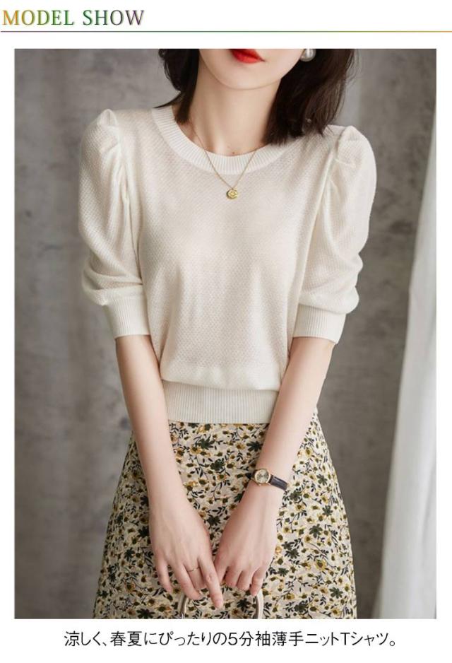 ニット半袖Tシャツ 半袖 レディース ラウンドネック ニットtシャツ 女性用 薄手 Tシャツ パススリーブ 無地 5分袖 プルオーバー ゆったり ニット半袖Tシャツ トップス 夏服 キレイめ