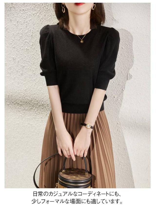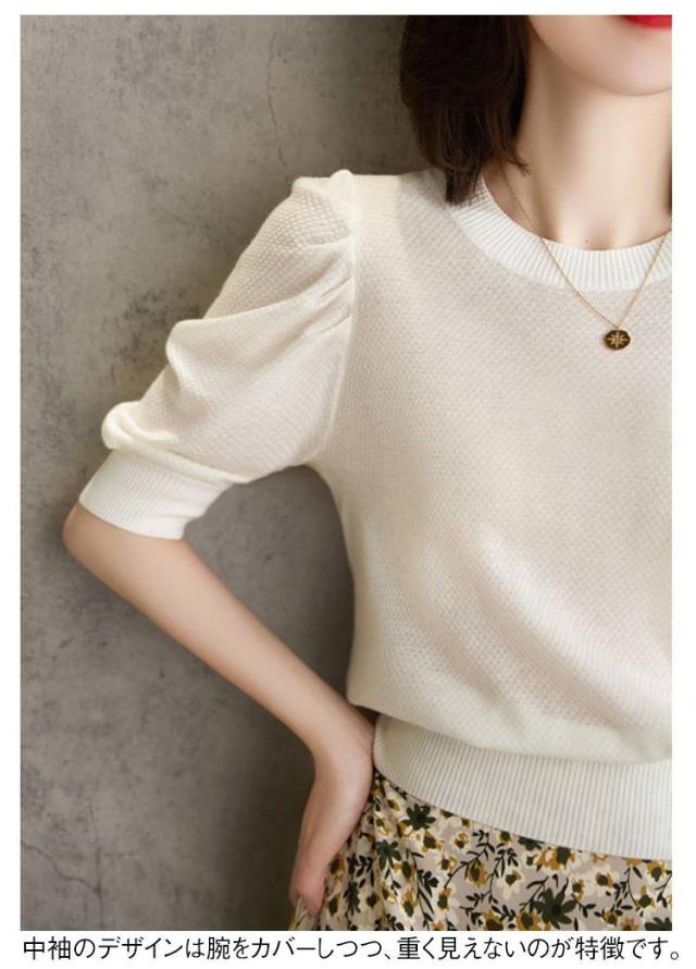| 涼しく、春夏にぴったりの5分袖薄手ニットtシャツ。 狭すぎないラウンドネックデザインは首元をきれいに見せ、優雅さを損なうことなく仕上げています。 中袖のデザインは腕をカバーしつつ、重く見えないのが特徴です。 薄くて清涼感があり、柔らかな印象を与えます。 日常のカジュアルなコーディネートにも、少しフォーマルな場面にも適しています。 | |