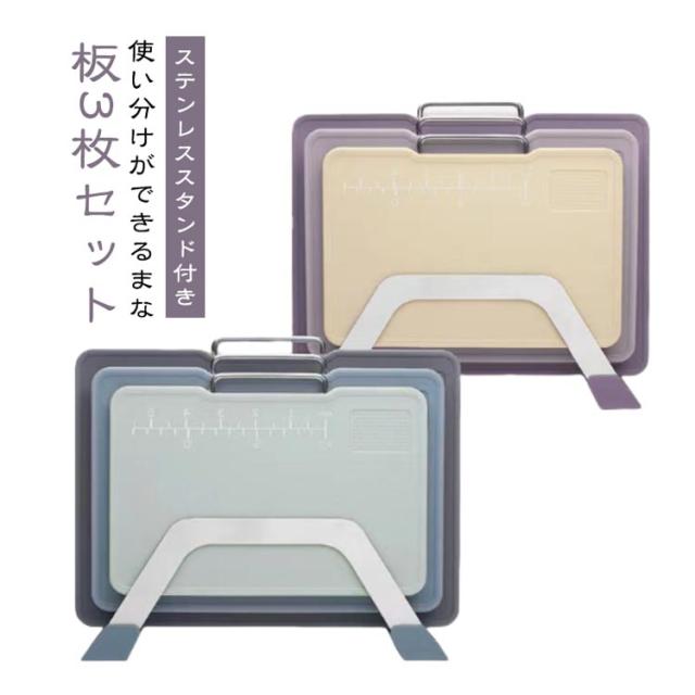 カッティングボード セット 使い分け 目盛り付き まな板 まな板 ステンレス 滑らない まな板 収納 まな板スタンド まな板立て 3枚 まな板セット 両面 スリム 軽量 薄い スタンド付き 滑り止め 食洗機対応 衛生的 樹脂製 PP