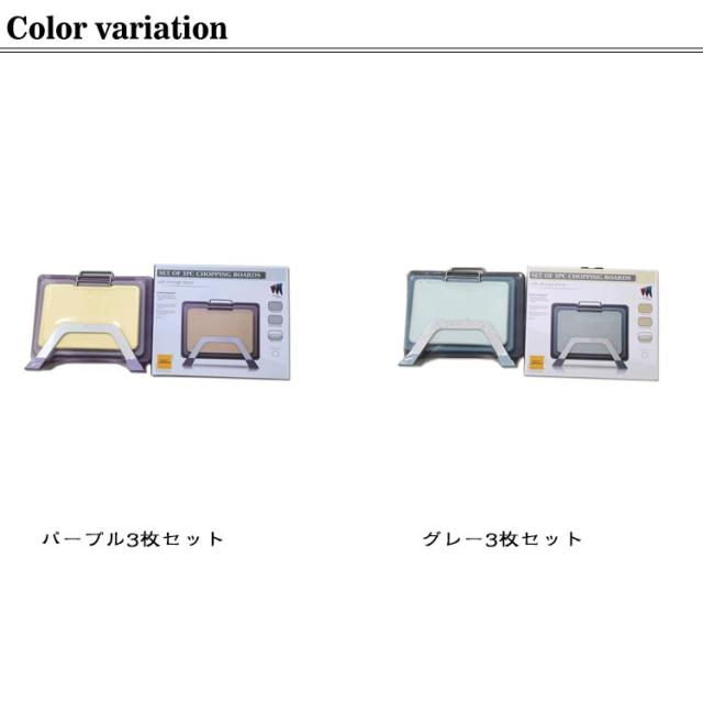 | 使い分けができるまな板3枚セット。【ステンレススタンド付き】【目盛り付き】 風通しが良く乾きやすいステンレススタンド付きで衛生的です。 肉・魚・野菜など食材に合わせて使い分けができます。 フチがある形状となっており食材や水分がこぼれるのを防ぐことができます。裏表でも使い分けが可能。 まな板のまわりにすべりにくい加工付。 シンプルで使いやすく、同じシリーズのアイテムに買い足しすれば統一感を出すことができます。 | |