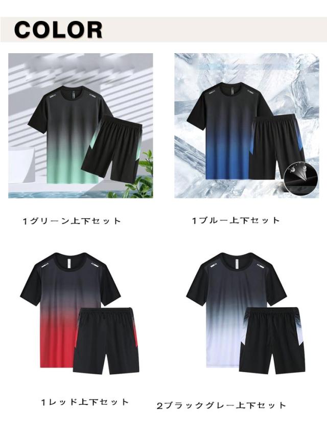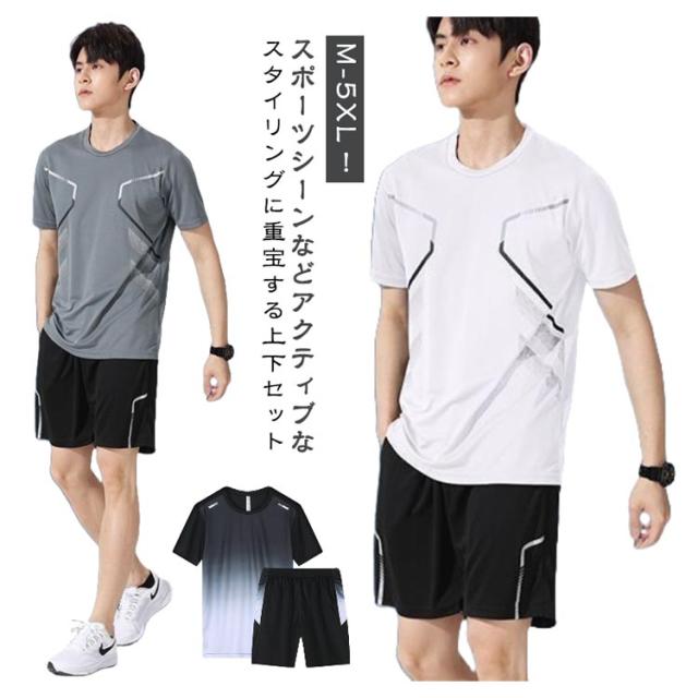 | M-5XL!スポーツシーンなどアクティブなスタイリングに重宝する上下セット。さらりとした着心地の半袖Tシャツとショートパンツのセットアップ! 軽量で通気性が良く、蒸れにくい!夏のスポーツに最適! ポリエステル素材は伸びがよくサラッとした肌触りが人気の素材。 ランニングウェア、トレーニングウェア、フィットネス、ウォーキンなどの動きにもフィットし着心地は最適です。 また、ルームウェアとしても着て頂けます。 | |