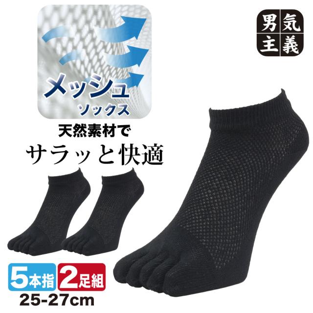 【綿麻×メッシュ】5本指スポーツソックス。麻のシャリ感とメッシュの通気性で一日中さらさら。スニーカー丈でゴルフやランニングに最適。蒸れを知らない日本製2足組。