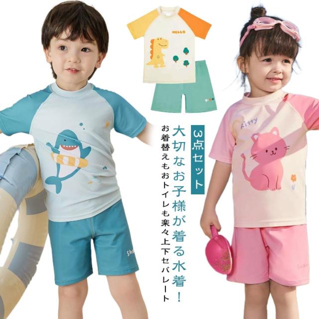 スイミング 上下セット 水着 幼児 半袖 子供用 小学生 トップス ビーチ ショートパンツ セパレート 海水浴 川遊び プール ベビー男子 キッズ スイムウェア 3点セット 快適 キュート UV対策 uvカット 日焼け対策 男児用 3点セット 水遊び アウトドア