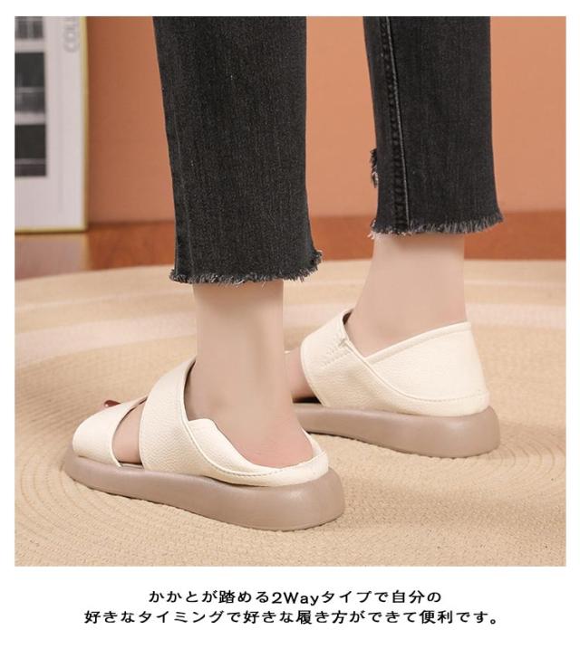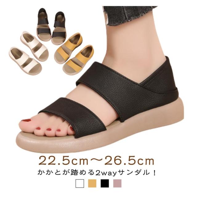 かかとが踏める 2WAY コンフォートサンダル サマー レディース 2way フラット 歩きやすい スリッパ ローヒール かかと付き シューズ サンダル 夏 美脚 かかとが踏める 靴 事務所 オフィス履き 旅行 疲れない 大きいサイズ