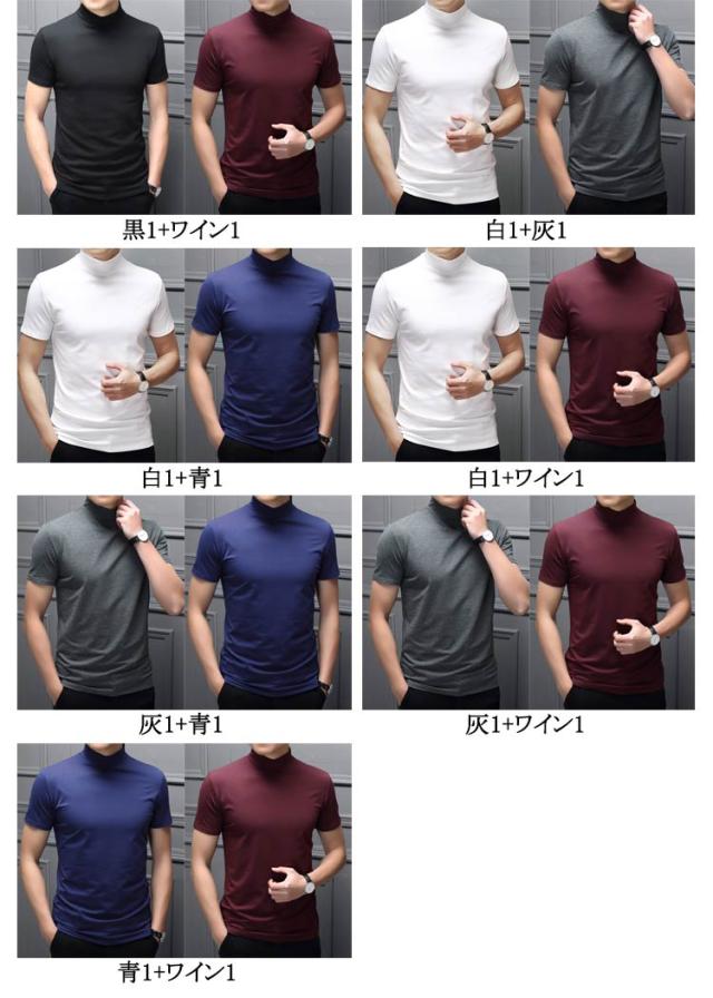 メンズtシャツ ゴルフtシャツ ハイネック 半袖 半袖 モックネック メンズ ストレッチ 2枚セット ゴルフウェア モックネックシャツ 無地 トップス ハイネックtシャツ ゴルフウェア カットソー 春 ランニング スポーツウェア 半袖Tシャツ 父の日