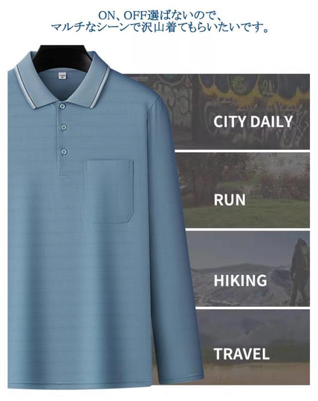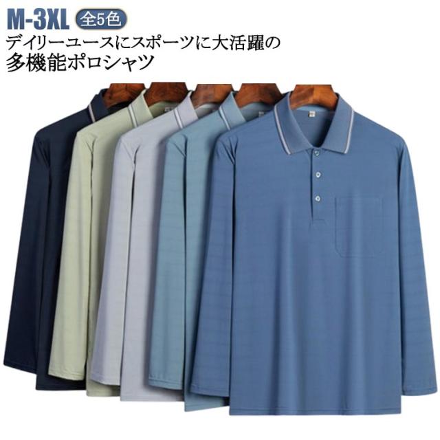 誕生日プレゼント 冷感 敬老の日 涼しい ポロシャツ ストレッチ Tシャツ 胸ポケット 吸汗 メンズ 薄手 通気性 夏 通勤 男性 長袖 紳士服 春 メッシュ生地 お父さん おじいちゃん 速乾 記念日 結婚記念日 父の日 メンズ ギフト