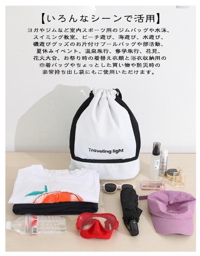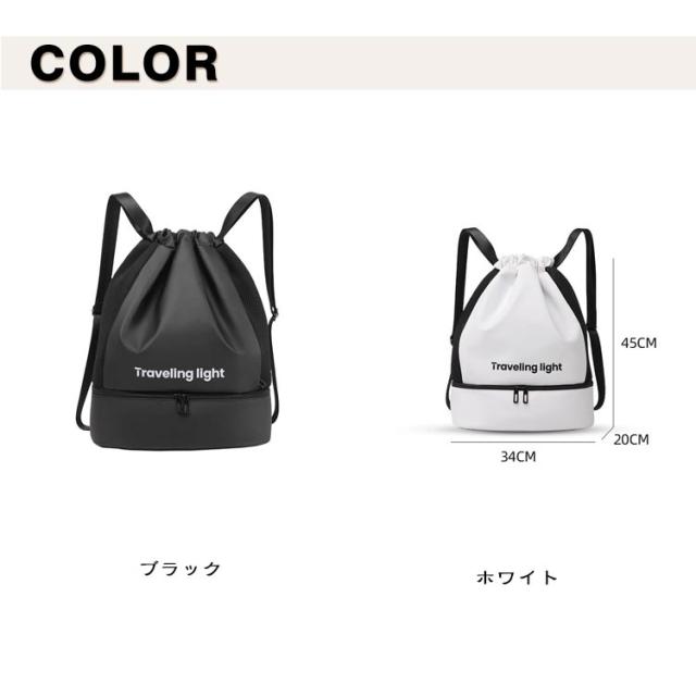| 【軽量&大容量】a4サイズの書類やタブレットも入る大容量。お出かけや部活の必要品がたっぷりに収納できます。 【お洒落、シンプル】洗練されたシンプルなデザインは男女問わず、機能性とデザインを兼ね備えるリュックスタイルのスポーツバッグ。 【撥水加工】プール、ビーチや雨天などでも安心に!水と汗の侵入を防止し、濡らされる心配もいりません。 ※完全防水デザインではございませんので、長時間の浸水はおやめください。 【いろんなシーンで活用】ヨガやジムなど室内スポーツ用のジムバッグや水泳、スイミング教室、ビーチ遊び、海遊び、水遊び、磯遊びグッズのお片付けプールバッグや部活動、夏休みイベント、温泉旅行、修学旅行、花見、花火大会、お祭り時の着替え衣類と浴衣収納用の巾着バッグやちょっとした買い物や防災時の非常持ち出し袋にもご使用いただけます。 | |