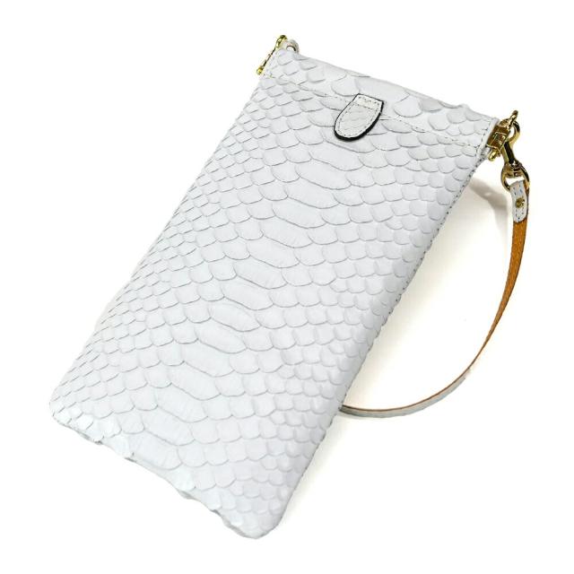 スマホポーチ スマホケース メンズ レディース iPhone Android メガネケース マルチケース バネ口金 縦型 薄型 本革 パイソン革 蛇革 ヘビ革 / マット ホワイト