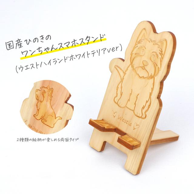 国産ひのき ワンちゃんスマホスタンド(ウエストハイランドホワイトテリアver)