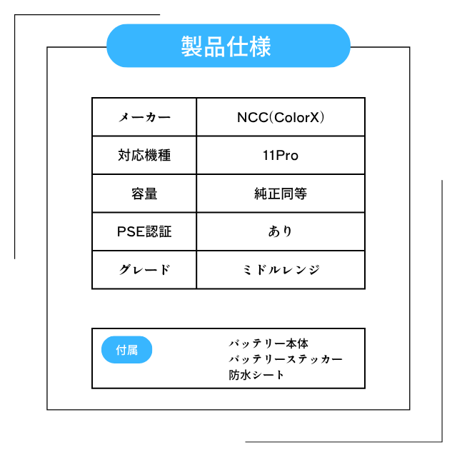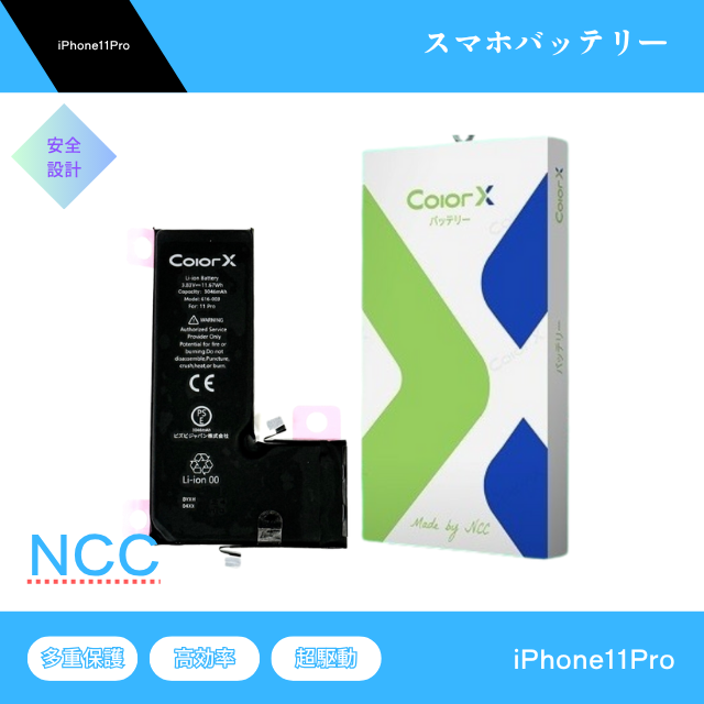 iPhone11Pro バッテリー NCC ColorX 交換 互換 バッテリー 防水シート バッテリーステッカー PSE取得