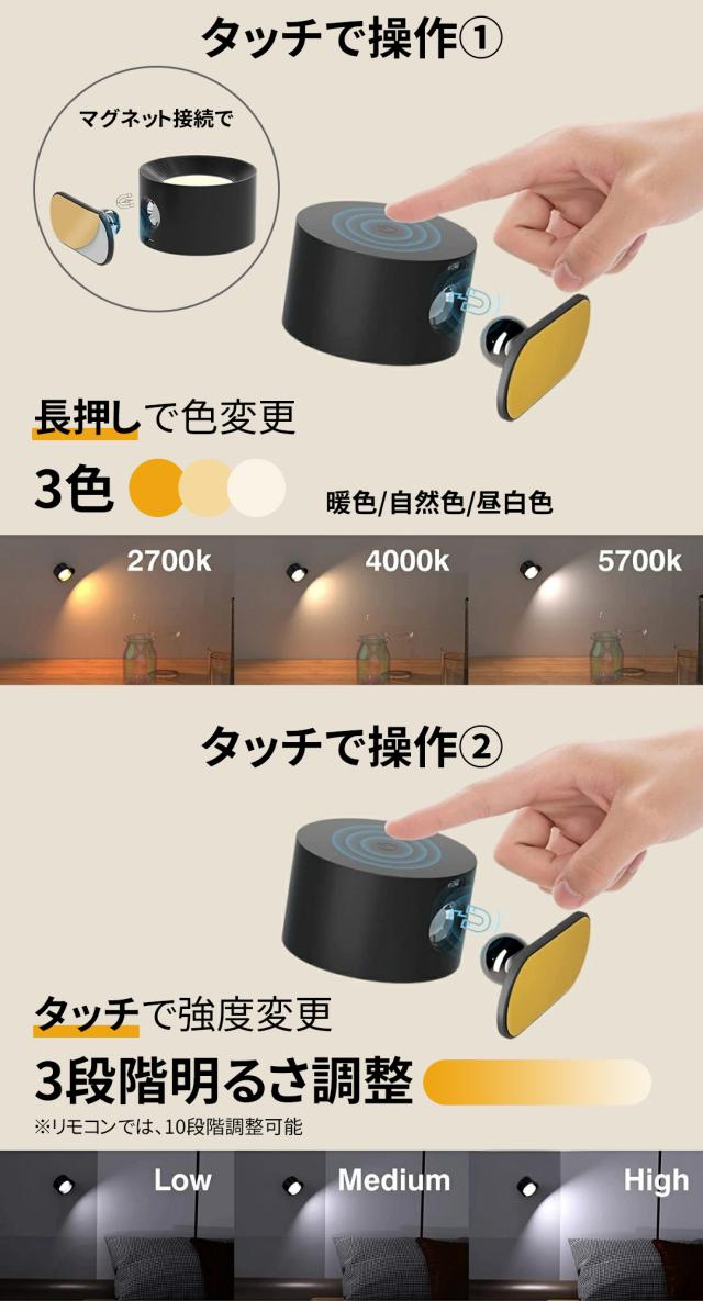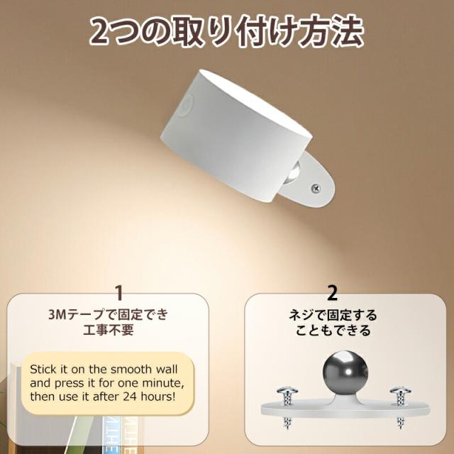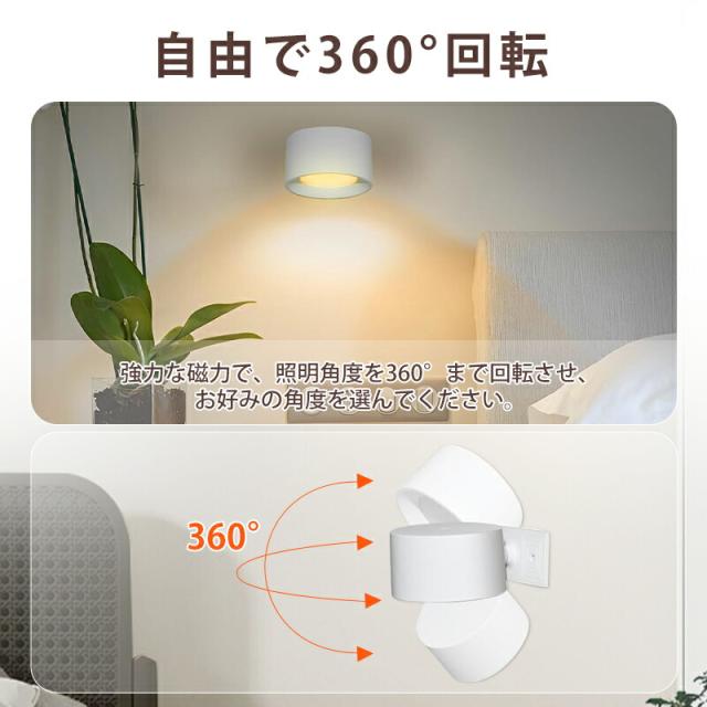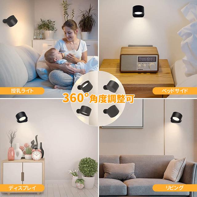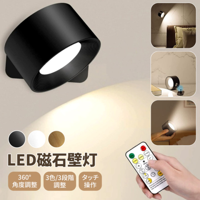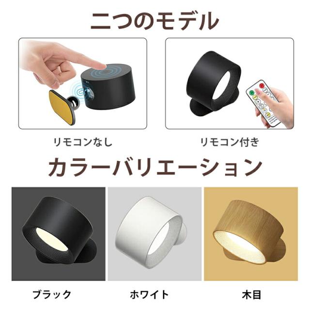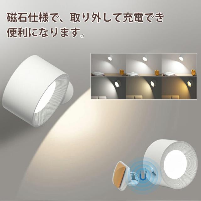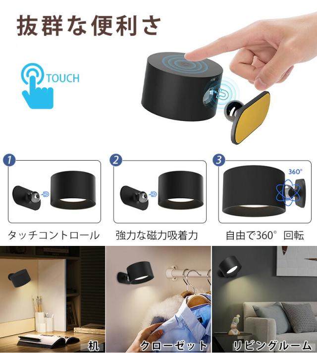 LED磁石壁掛けライト LEDライト ブラケットライト 3段階調光調色 360°照明角度調整 タッチ操作 工事不要 ウォールライト 玄関ライト 壁取付ランプ 間接照明 ブラック ホワイト 木目調 壁掛け照明 コードレス