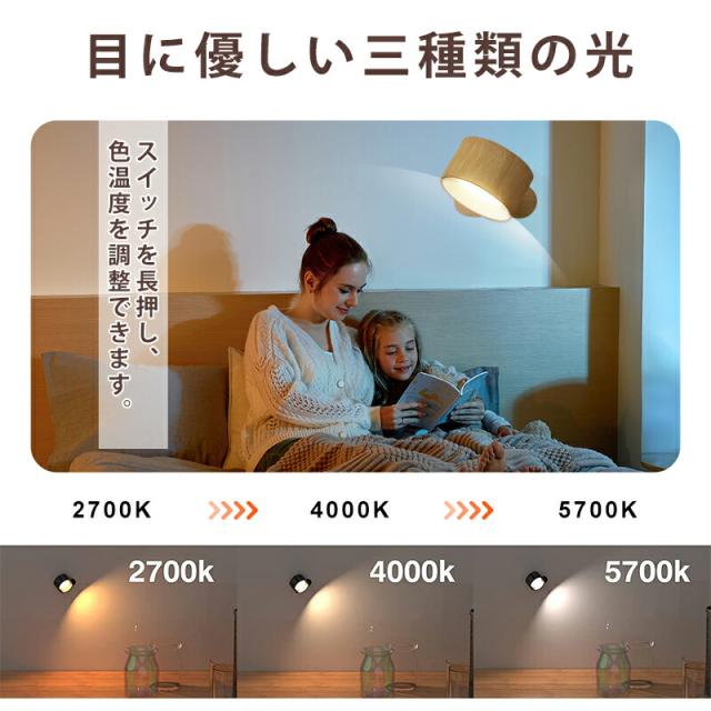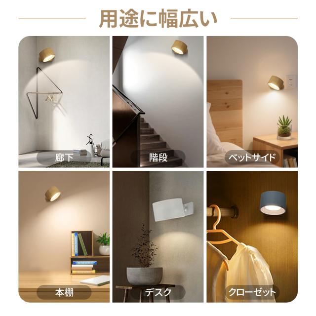 LED磁石壁掛けライト LEDライト ブラケットライト USB充電 360度回転 タッチ操作 机 クローゼット リビングルーム 反射防止 ブラック ホワイト 木目調 壁掛け 送料無料 ライト LEDライト ブラケットライト 照明 ランプ スポットライト 壁ライト 3段階調光調色 360°照明角度調整 コードレス 工事不要 ウォールライト 玄関ライト 壁取付ランプ 間接照明 壁掛け照明