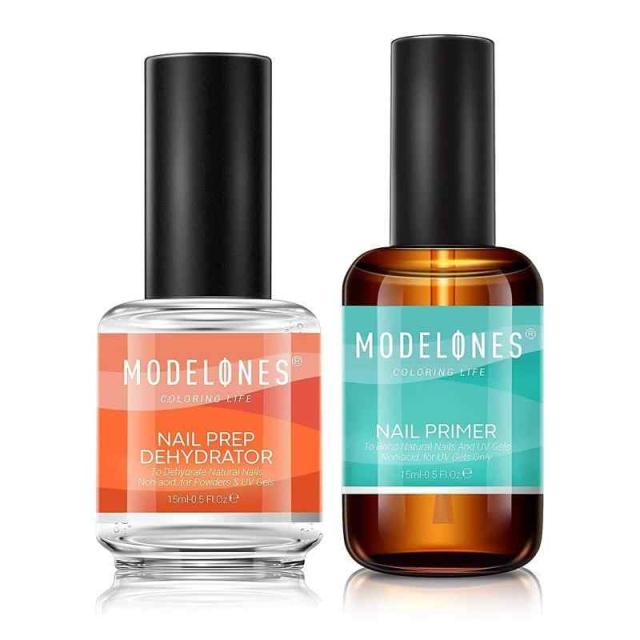 バランスと予防:Modelonesのデハイドレイトは、爪の油分を減らし、しっかりとしたファンデーションを作るのに最適です。ジェルプライマーを使用して、酸性を含まないネイルベースを作り、ジェルを塗ります