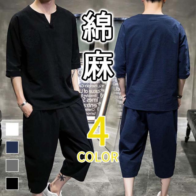 セットアップ メンズ 上下セット 夏 綿麻 トップス リネン素材 無地 ジャージ 半袖 スウェット パーカー スウェット 大きいサイズ パンツ