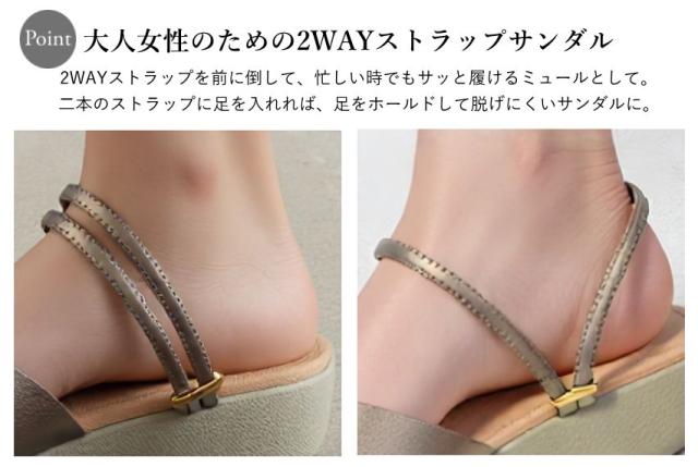サンダル レディース ストラップ ミュール 2way 疲れない 歩きやすい 履きやすい 脱げない 痛くない 柔らかい 低反発 ウェッジソール 厚底 かかとあり かかと付き かかとなし つっかけ おしゃれ 外反母趾 日本製 通勤 シューズ 靴 nc92318