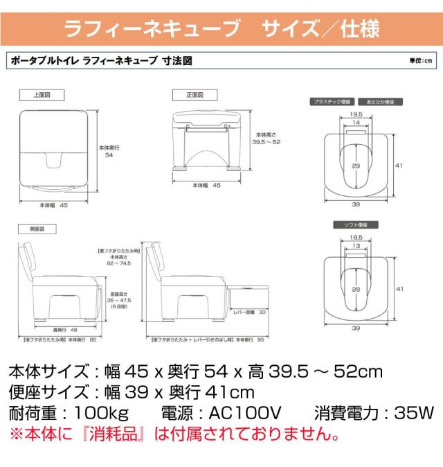 パナソニック ラップ式トイレ ラフィーネキューブ 専用の処理袋 60回分です。 ※本体は付属しておりません。処理袋のみのお届けとなります。 ラフィーネキューブは見た目がオシャレなポータブルトイレです。 災害時、介護、アウトドア など様々な状況で活躍します。 【手動ラップタイプ】 ラップタイプは手動でレバーを引き上げるとわずか10秒で処理袋を簡単に圧着(ラッピング)することができ、臭い漏れを防ぎます。 圧着した処理袋はそのまま廃棄することができるので、排泄物の処理負担を軽減します。 ※ラフィーネキューブ本体と専用凝固剤の併用が必要です。 ※自治体によって分別の仕方が異なるのでお住まいの自治体にご確認ください。 |