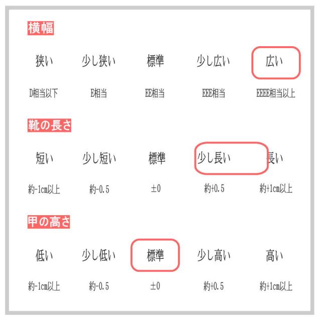 ワイズ5E-2.5cmヒール、ワイズ4E-4cmヒール、ワイズ4E-4cmヒール-ストラップ付き、ワイズ4E-5.5cmヒール、の4デザインから選べます。
