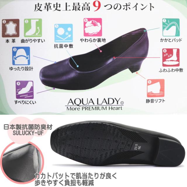 即納 本革 パンプス 5E 4E AQUA LADY アクアレディ かかとパット 痛くない 消臭 抗菌 消音 レディース フォーマル ビジネス No.7030 7050 7051 7060