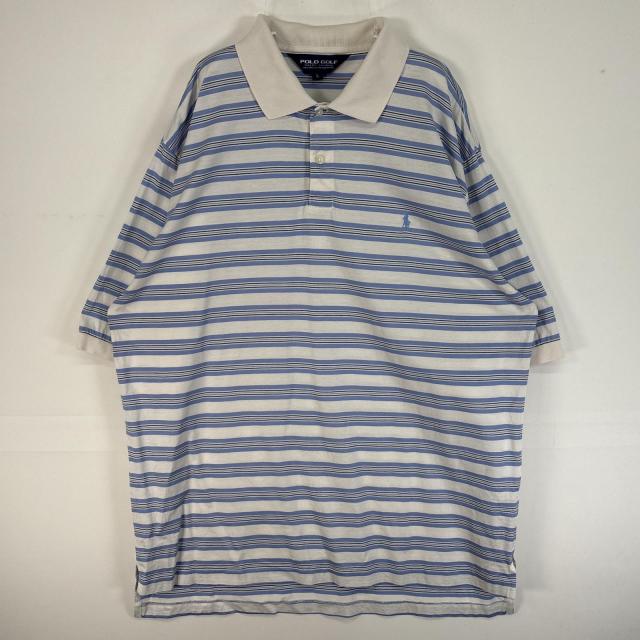 古着 ポロゴルフ 半袖 ポロシャツ ボーダー ロゴ 刺繍 2ボタン L ブルー系 マルチカラー メンズ