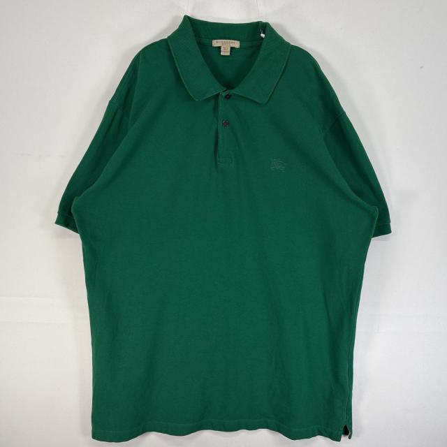古着 バーバリー BURBERRY 鹿の子 半袖 ポロシャツ ロゴ 刺繍 大きいサイズ 肉厚 2ボタン XL グリーン 無地 メンズ