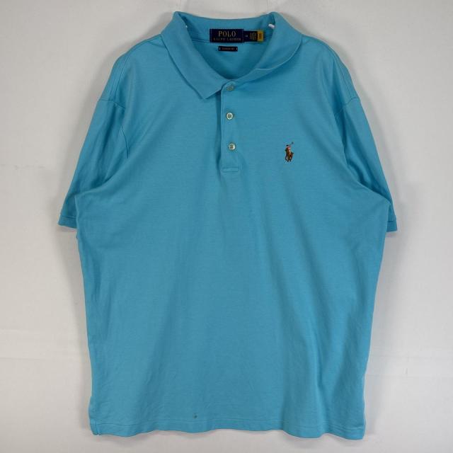 古着 ポロ・ラルフローレン POLO RALPH LAUREN 半袖 ポロシャツ ロゴ 刺繍 3ボタン M 水色 無地 メンズ