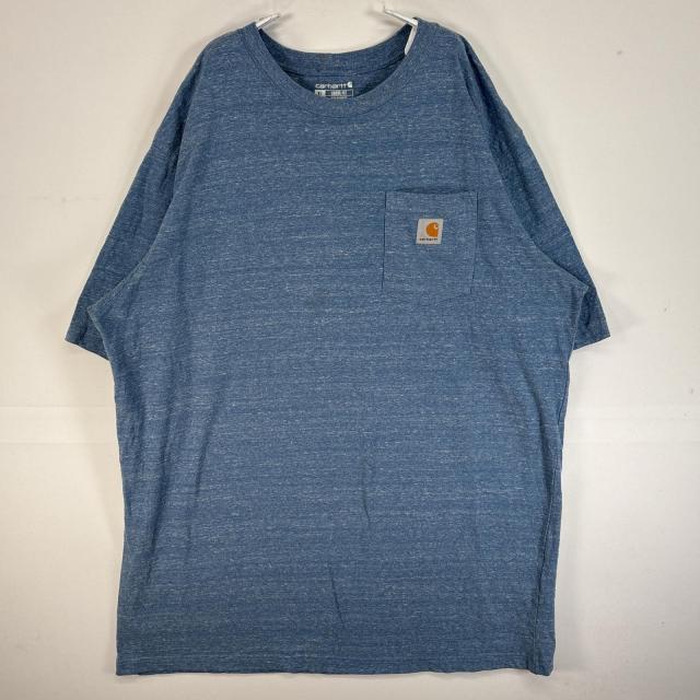 古着 カーハート Carhartt 半袖Tシャツ 大きいサイズ 肉厚 ワンポイント ロゴ 胸ポケ XL ブルー系 無地 メンズ