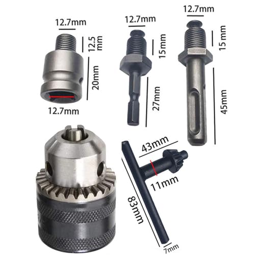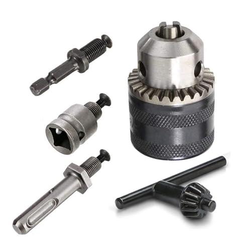 1.5-13mmドリルチャック 六角シャンク + SDS + 1/2インチアダプターソケット ブラック メタルキー付き インパクトレンチ変換ツール 13mm 電動ドリルチャック インパクト用ドライバー 全金属タイプドリルチャック キーレスドリルチャックアダプターセット