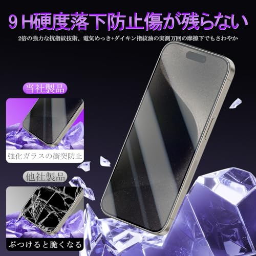 【専用設計 簡単に貼り付け】iphone 15 pro 専用液晶画面保護ガラスフィルム。フィルムのシリコン自己吸着層により、スチールフィルムを携帯電話に合わせて軽く置くだけで、気泡が入らないように簡単に取り付けられます。することができます全ての強化ガラスフィルムを手作業で1枚1枚検品しておりますので、品質はとても安定します弊社の製品は買う価値があると信じて、別に買うために行く必要はございません