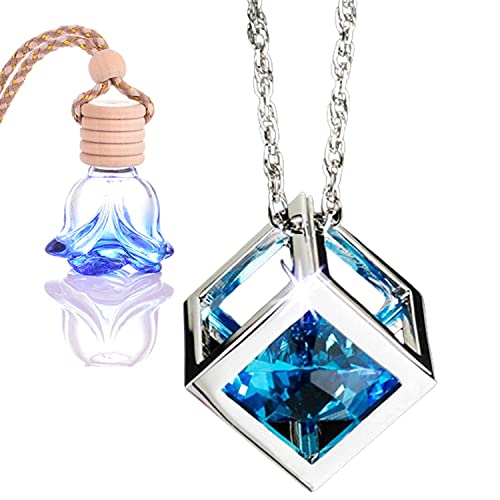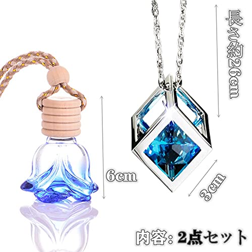 車 ルームミラー 飾り 車ペンダント クリスタル 吊り下げ 車用ルームミラー用デコレーション 水晶 装飾 おしゃれ スタイリッシュ クリスタル アクセサリー 自動車のバックミラー 車の装飾品 車内 お守り カー飾り レディース 誕生日 クリスマス プレゼント 贈り物 2点セット (オーシャンブルー)