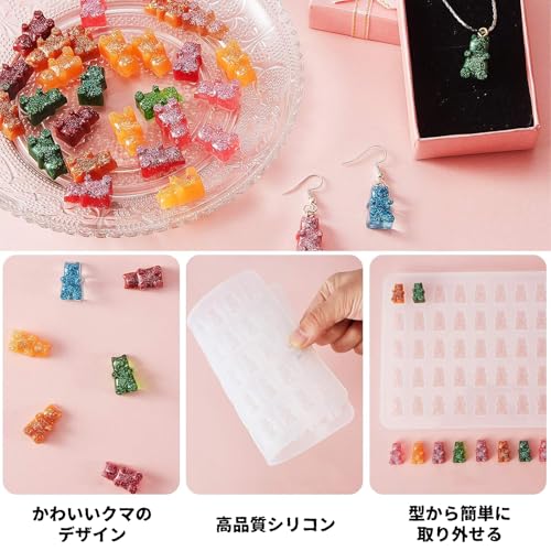 熊さん グミ 型 シリコンモールド レジン モールド 50個キャビティ UVレジン対応 ハンドメイド用 DIYツールセット グミベア型 粘土抜き型付き