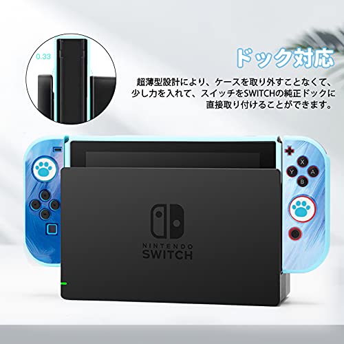 Switchスイッチ ケース 分体式カバー全面保護ケース 軽薄量 滑り止め 汚れ防止 耐衝撃 着脱簡単 アナログスティックカバー 可愛い猫爪肉球 強化ガラスフィルム 耐久性TPU製 ブルー