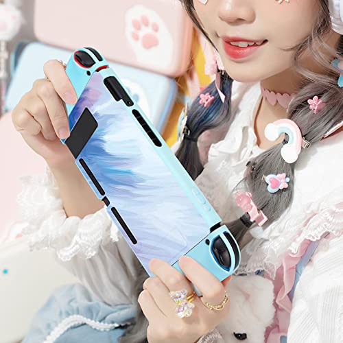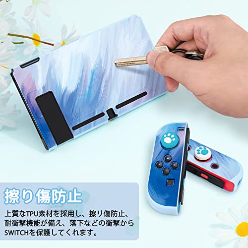 【美しい配色】芸術なインクスプラッシュ調色、おしゃれなグラデーション色、明るい合色、表面にホコリやゴミを吸着しにくいアンチダスト素材を使用し、汚れても湿った布で簡単に落とせし、綺麗な見た目のままで繰り返使えます。また、ぷにぷに肉球型のアナログスティックカバーも4個付属しております!