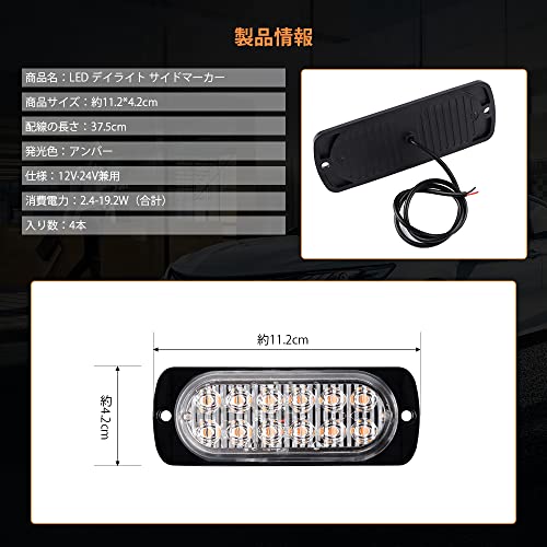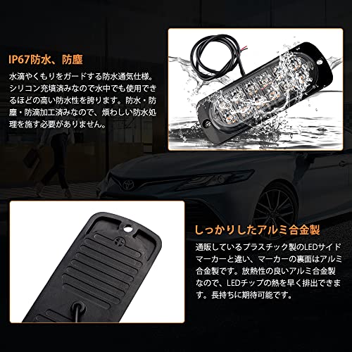 LED マーカーランプ デイライト サイドマーカー アンバー 車用 マーカー グリルマーカー トラックマーカー LEDライト バルブ 自動車 乗用車 トラック 12V 24V 車 ドレスアップ 汎用 IP67防水 4本入り