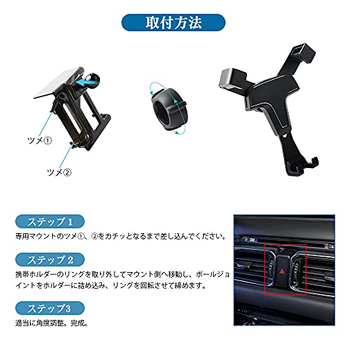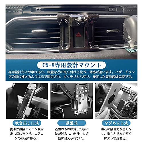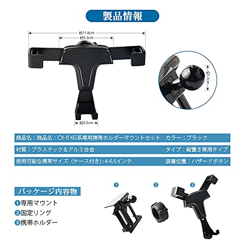マツダ CX8 KG系 車載ホルダー スマホホルダー 内装 アクセサリー カスタム パーツ MAZDA CX-8 専用設計 ホルダー ハザードボタンに装着 360度回転 重力固定式 ブラック