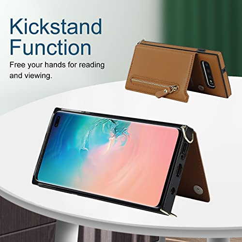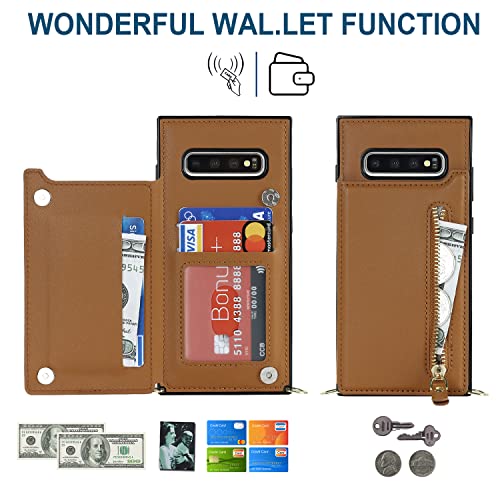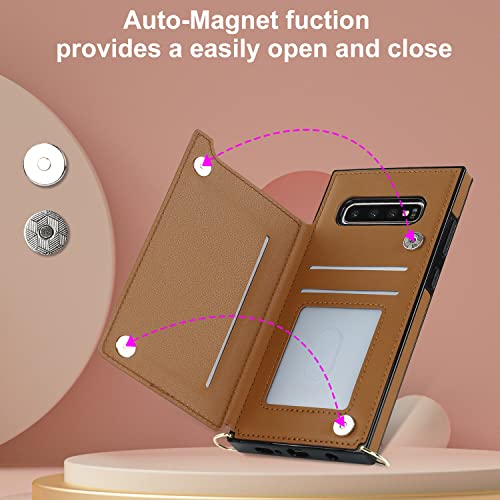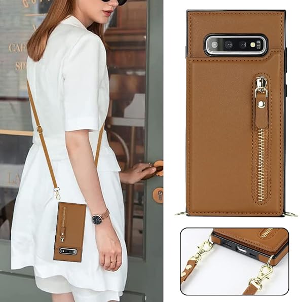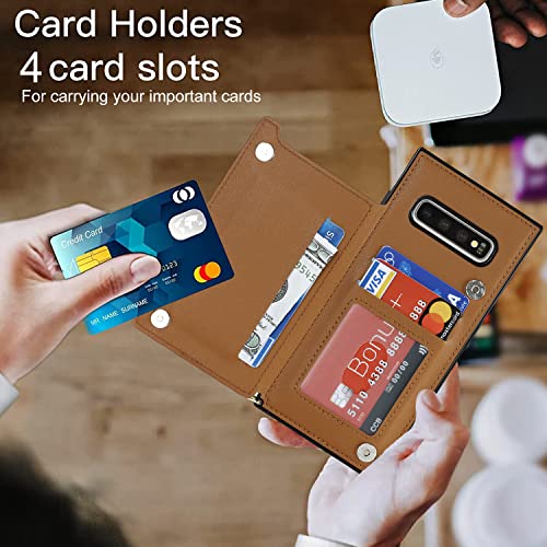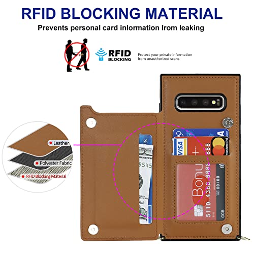Galaxy S10 SC-03L SCV41スマホ ケース手帳型 肩掛け 首かけ 斜めがけ Galaxy S10 手帳型 ケース Galaxy S10 ケース 手帳型 Galaxy S10 スカード収納[RFID機能]Galaxy S10ショルダー ケース[マグネットダブルデザイン]ステント機能 スマホショルダーSC-03L カバー スマホすとらっぷ斜めかけ -ブラウン