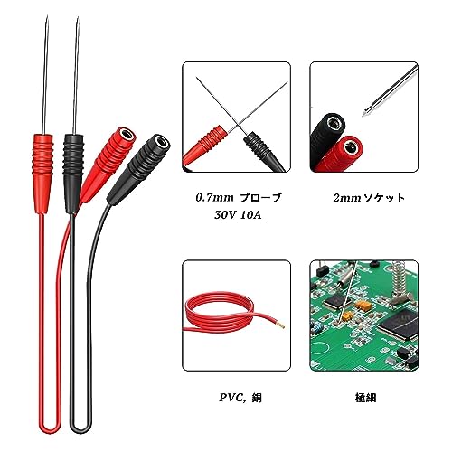 ワイヤーピアスプローブ テストリードアタッチメント 極細ニードル 自動車の電装診断 測定 計測 2mmメスソケットからステンレス鋼プローブ 20cm 極細 ピン 端子 テスター